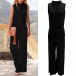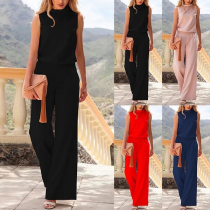 Fashion Solid Color Mock Neck Sleeveless Straight-cut Jumpsuits