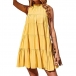 How about this dress? The mock neck adds a touch of elegance, while the tiered mini length brings a playful and trendy element to the dress. The flowing tiers create movement and a flattering silhouette. Hope you like it.