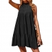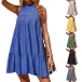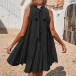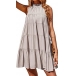 Fashion Solid Color Mock Neck Tiered Mini Dress