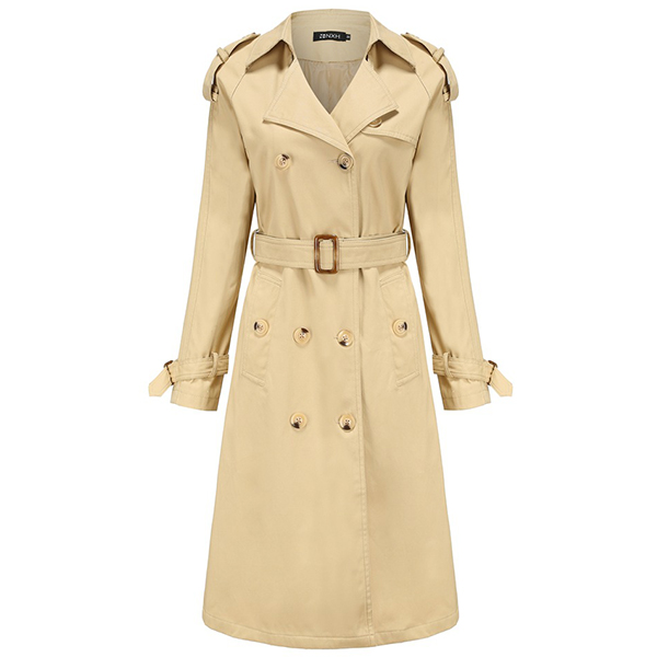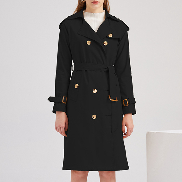 Fashion Solid Color Notch Lapel Double-breasted Buckle Self-tie Longline Jacket