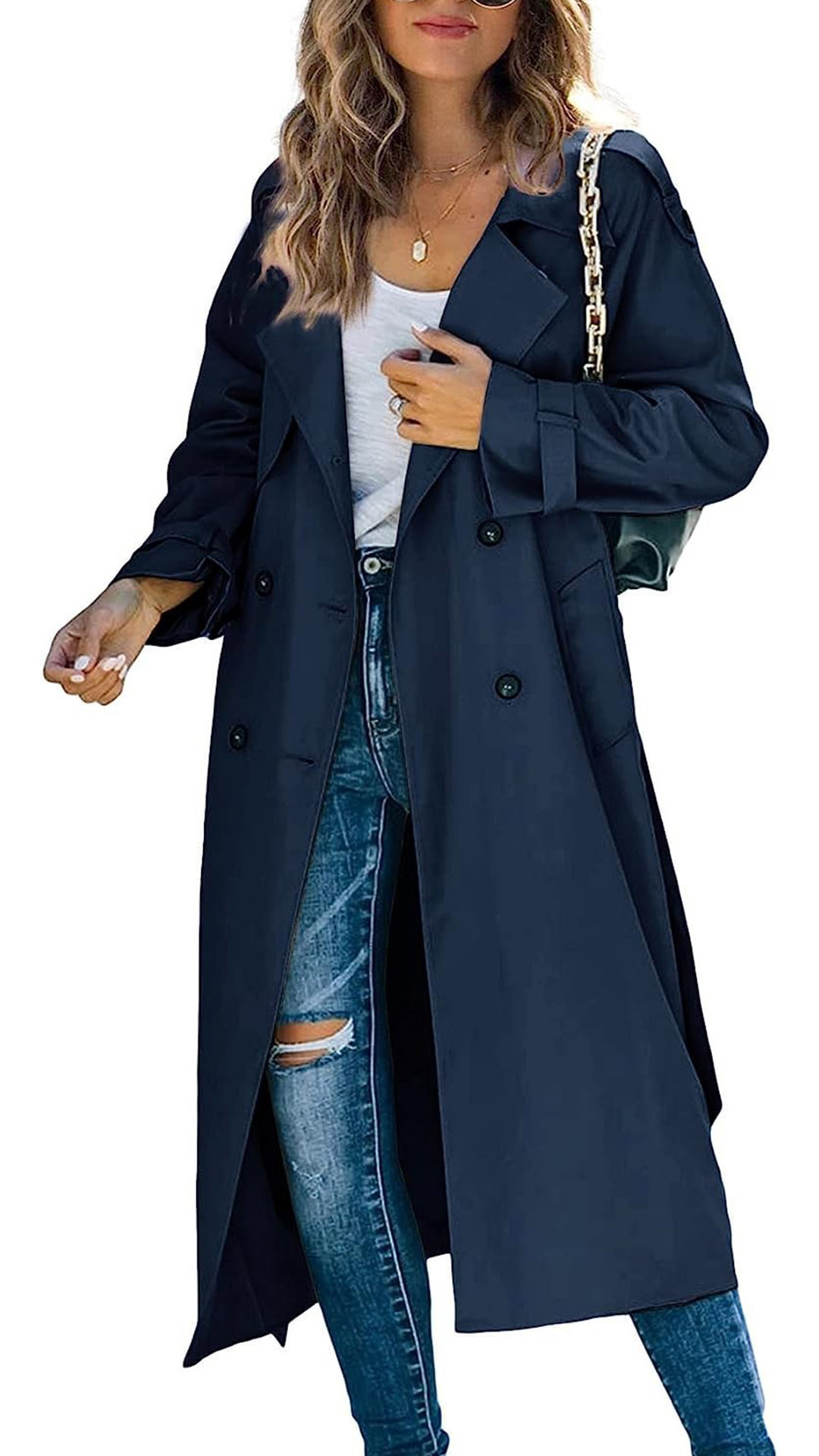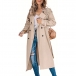 Fashion Solid Color Notch Lapel Double Breasted Longline Windbreaker Jacket