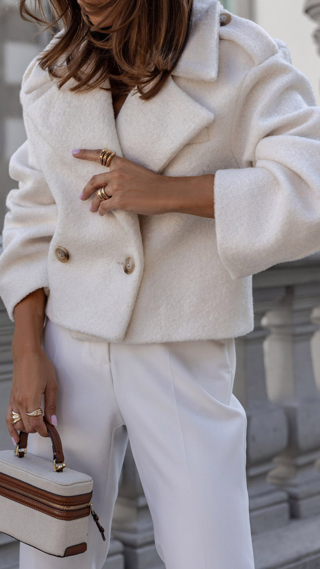 This stylish duffle jacket features a solid color design, notch lapel, long sleeves, and a cropped length, creating a chic and modern look. Pair it with high-waisted jeans and ankle boots for a casual yet stylish look, or layer it over a dress for a more dressed-up ensemble.