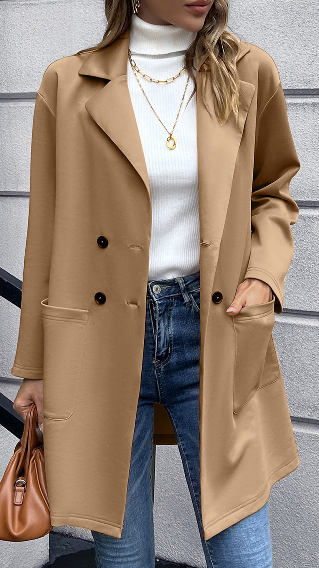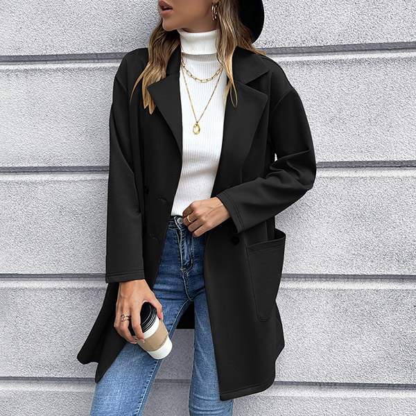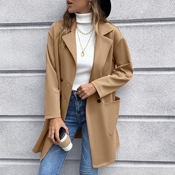 Fashion Solid Color Notch Lapel Long Sleeve Double Breasted Patch Pockets Jackets