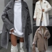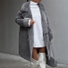 Fashion Solid Color Notch Lapel Long Sleeve Plush Lined Longline Jacket