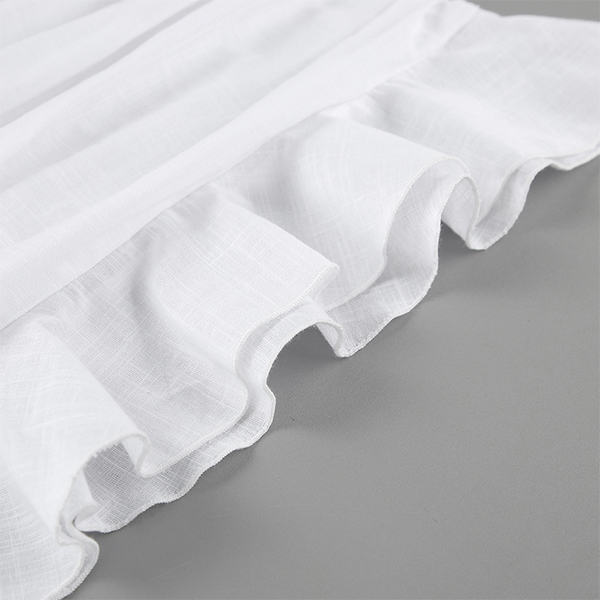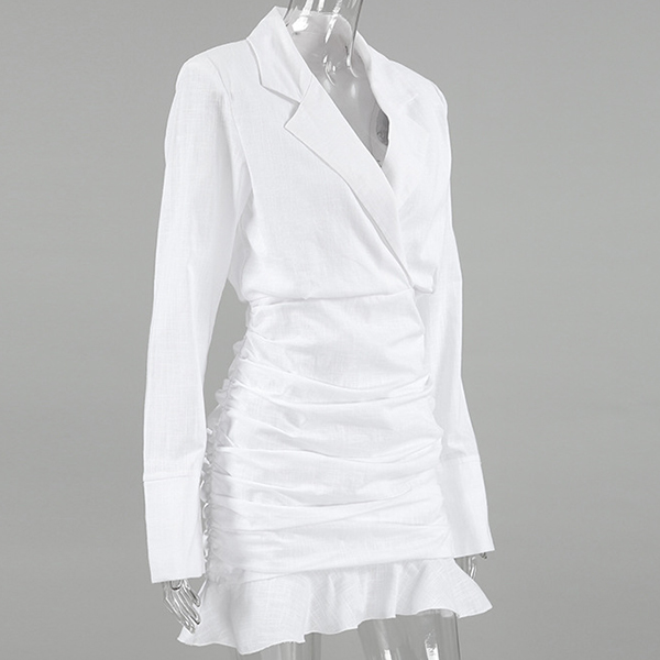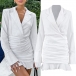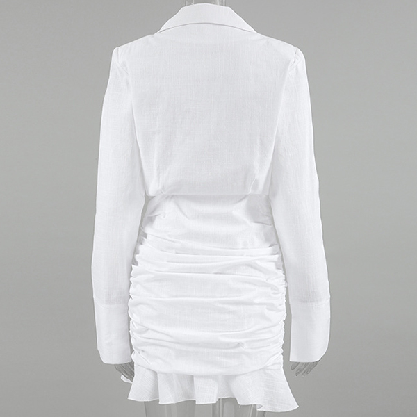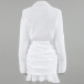 Fashion Solid Color Notch Lapel Long Sleeve Ruffle Hemline White Dress