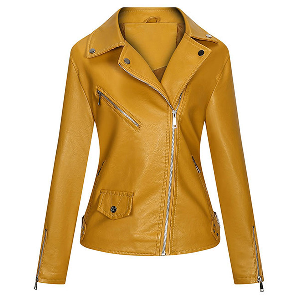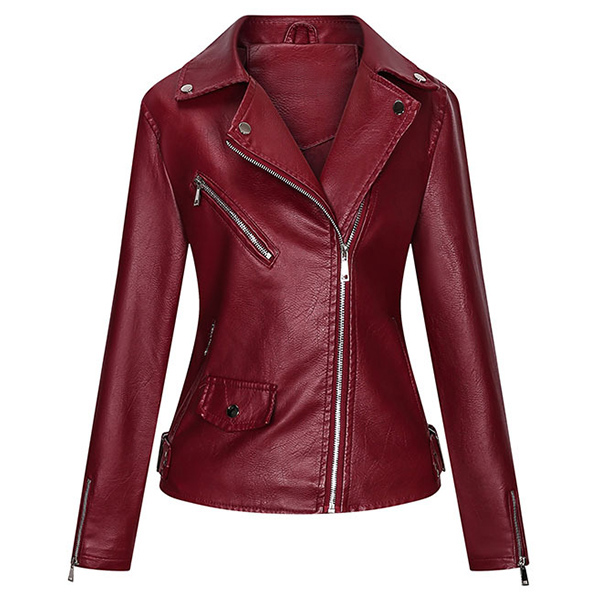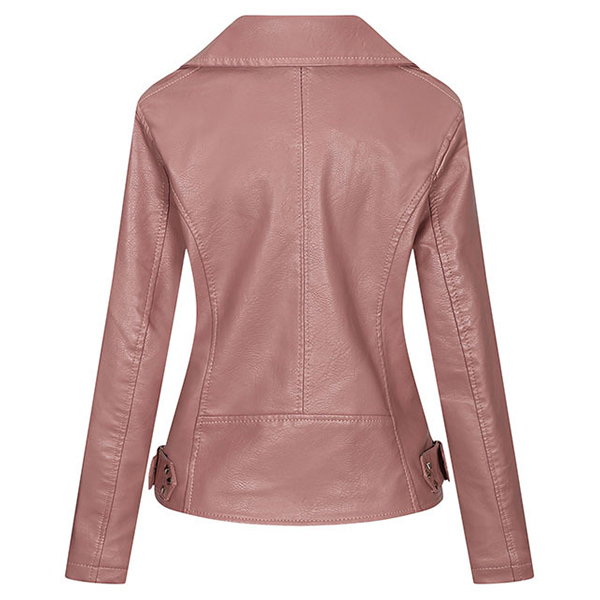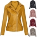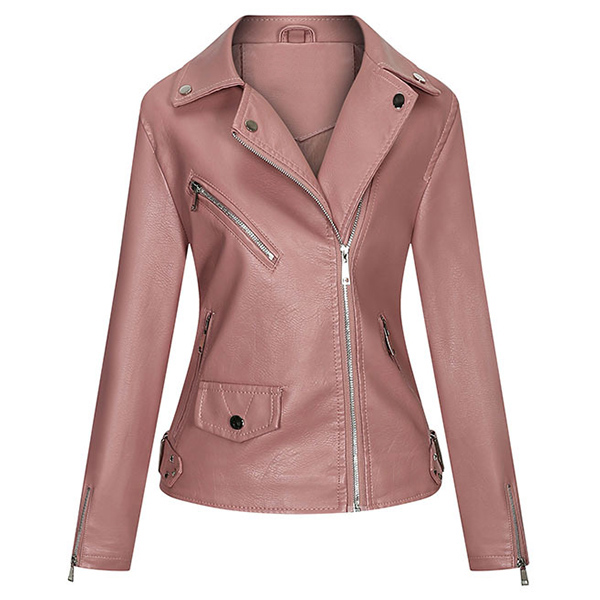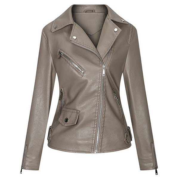 Fashion Solid Color Notch Lapel Long Sleeve Slant Zipper Artificial Leather PU Jackets