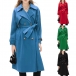 Fashion Solid Color Notched Lapel Long Sleeve Double-breasted Self-tie Duffle Jacket