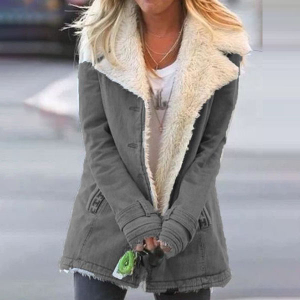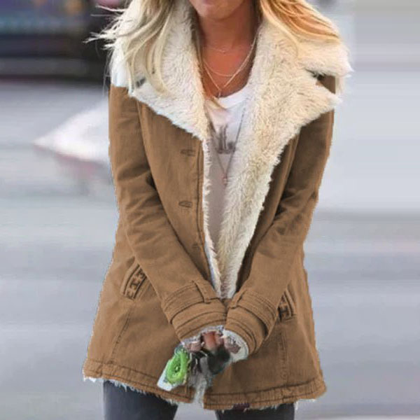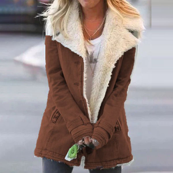 Fashion Solid Color Notched Lapel Thin Plush Lining Padded Coat
