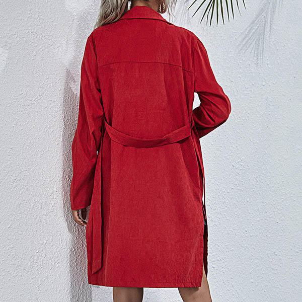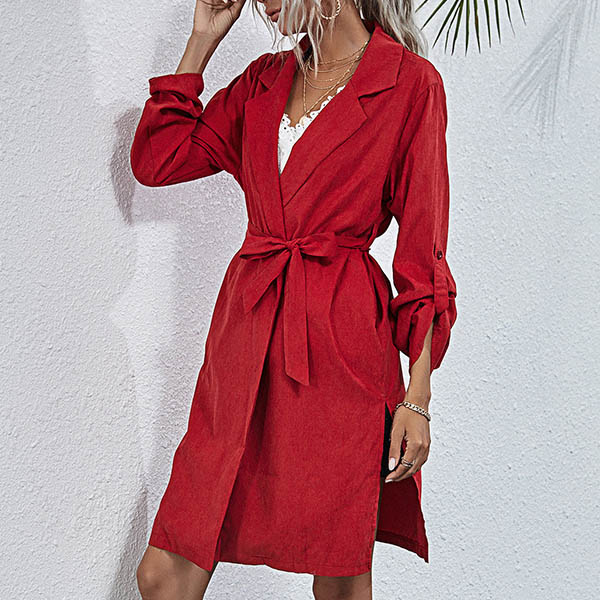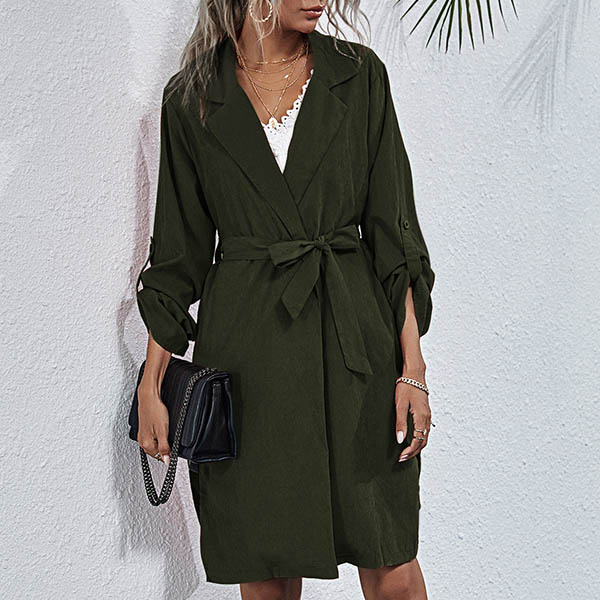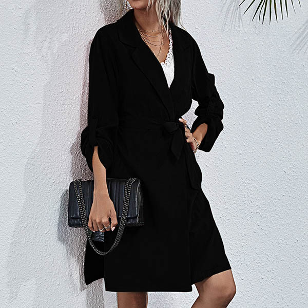 Fashion Solid Color Notched Lapel Windbreaker Coat