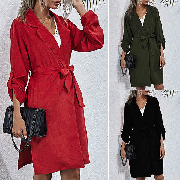 For a delicate and charming autumn look,this windbreaker coat can be a perfect addition. Solid color style,the waist strap design can easily enhance its entire charm,and the unique sleeve design will make it look more attractive. We suggest you matching with a tight dress and ankle boots to start your wonderful day!