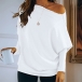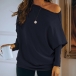 Fashion Solid Color Oblique Shoulder Pullover Bat Sleeve Knitted Top