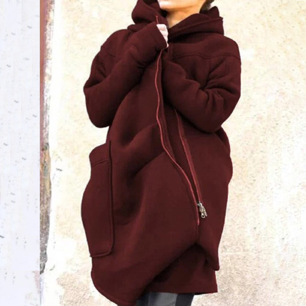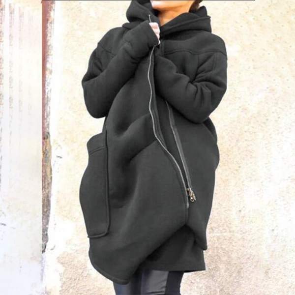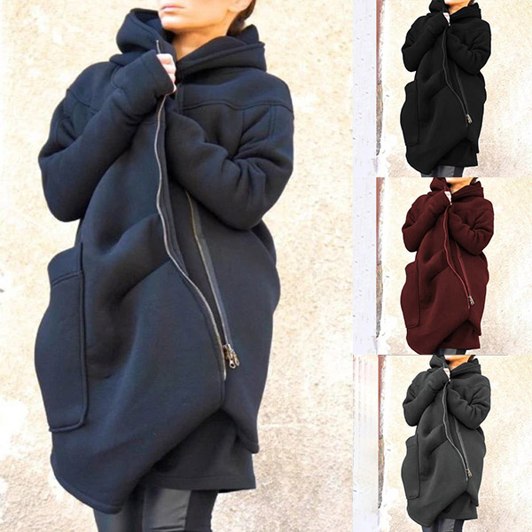 When the weather gets cold,you can just invite this sweatshirt coat to your wardrobe. Solid color style,the oblique zipper and big pocket design make this piece full of chic and stylish vibes. We suggest you matching with a leggings for a charming autumn look!