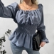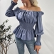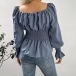 Fashion Solid Color Off-the-shoulder Long Sleeve Smocked Ruffled Shirt