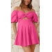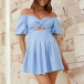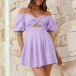 Fashion Solid Color Off-the-shoulder Short Sleeve Front Cutout Mini Dress