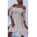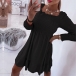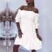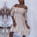 Fashion Solid Color Off-the-shoulder Smocked Elow Sleeve Mini Dress