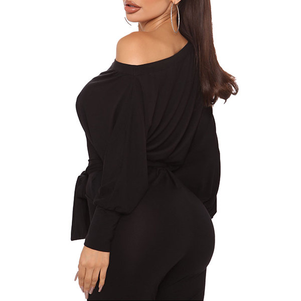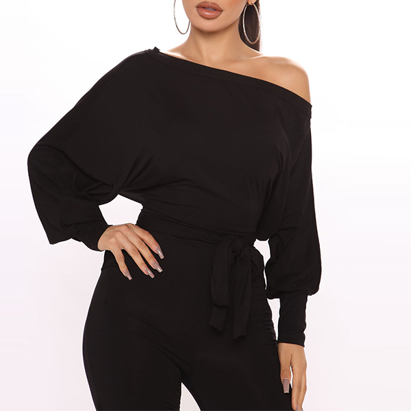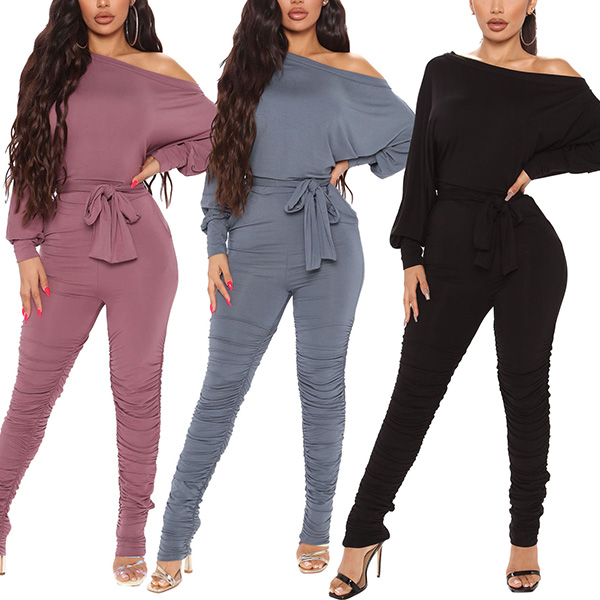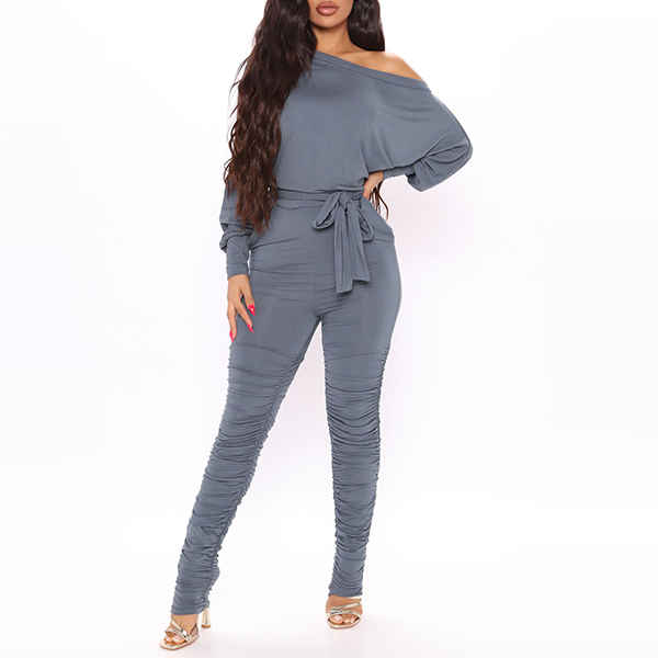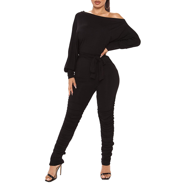 Fashion Solid Color One-shuolder Self-tie Ruched Jumpsuit