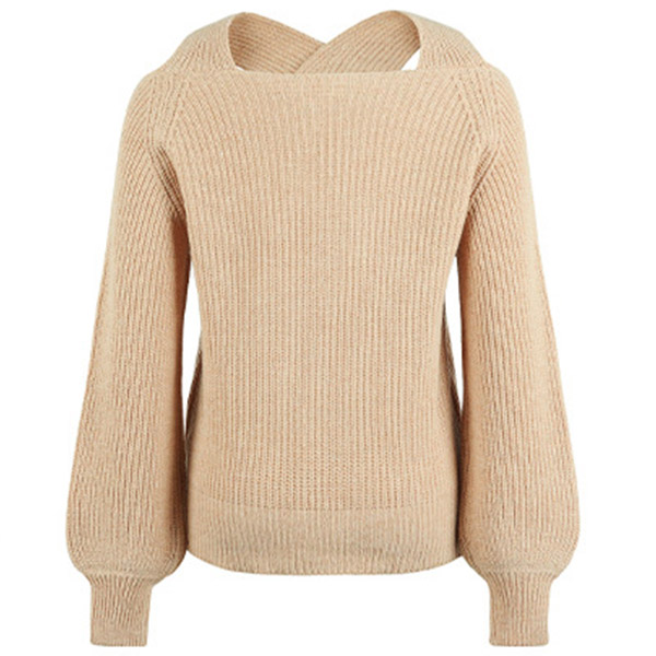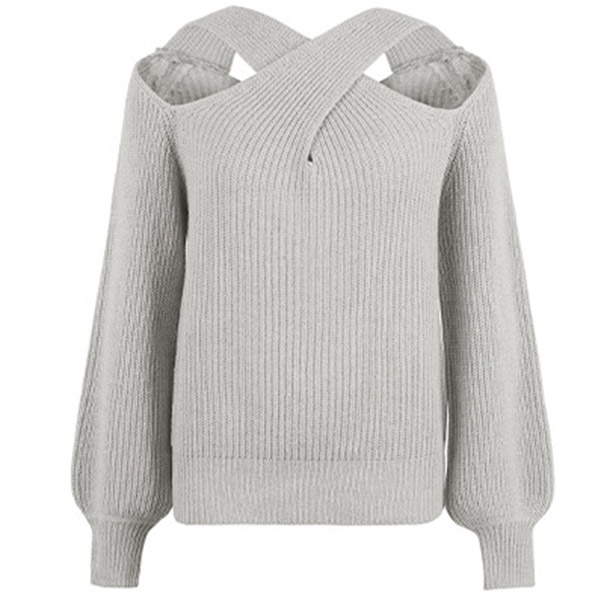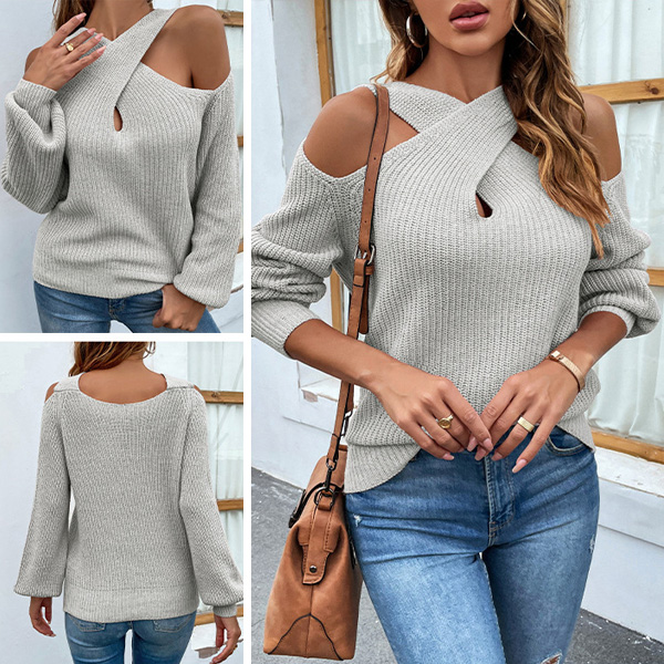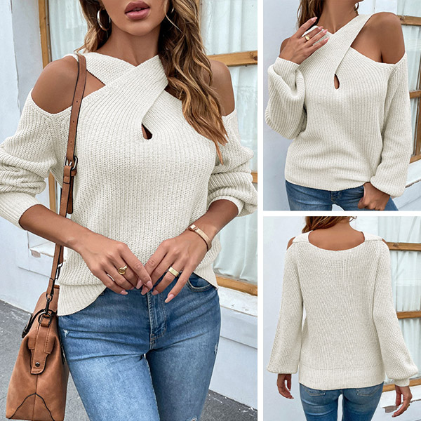 Fashion Solid Color Open-shoulder Long Sleeve Criss-cross Sweater