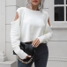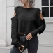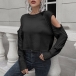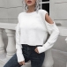 Fashion Solid Color Open Shoulder Long Sleeve Knitted Crop Sweater