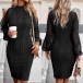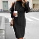 Fashion Solid Color Open-shoulder Long Sleeve Mock Neck Bodycon Dress