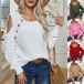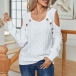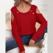 Fashion Solid Color Open Shoulder Round Neck Long Sleeve Knitted Sweater