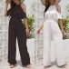 Fashion Solid Color Open-shoulder Short Sleeve Wide-leg Jumpsuit