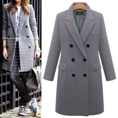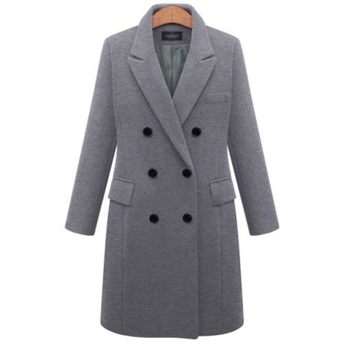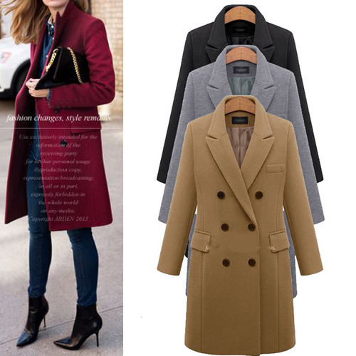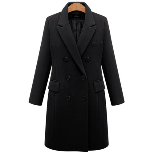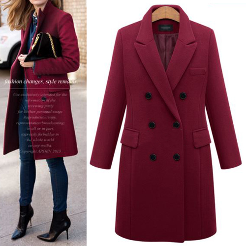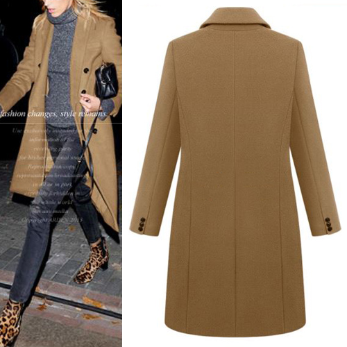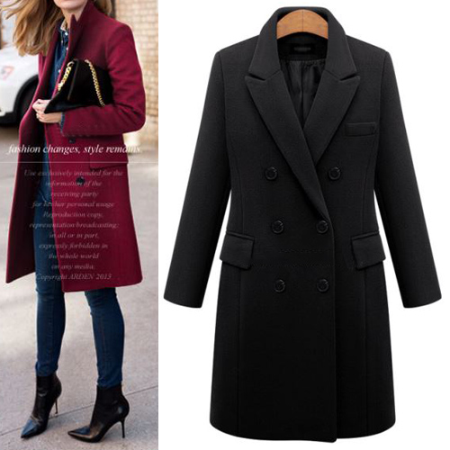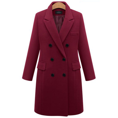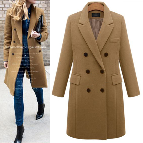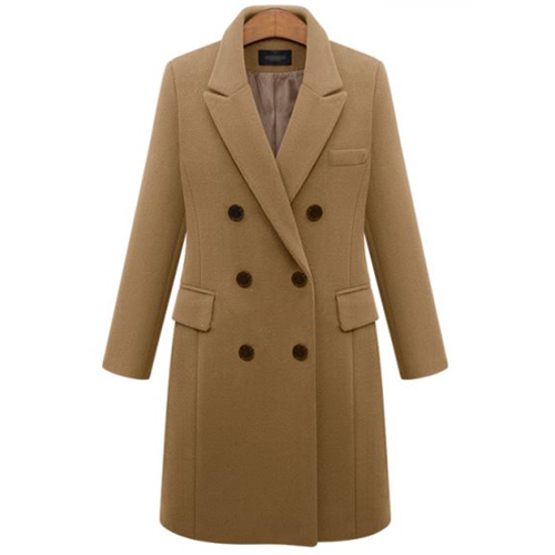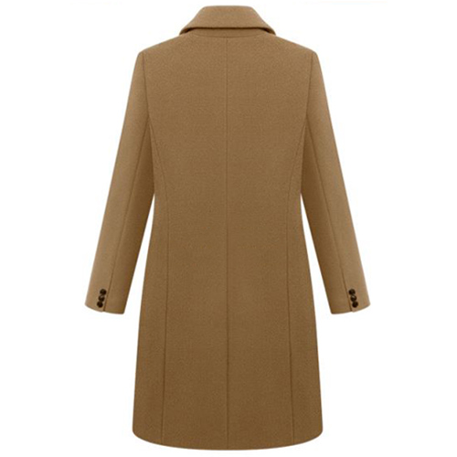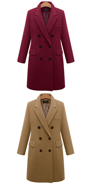 Lapel construction, accompanied with long sleeve, solid color and double-breasted design, this woolen coat