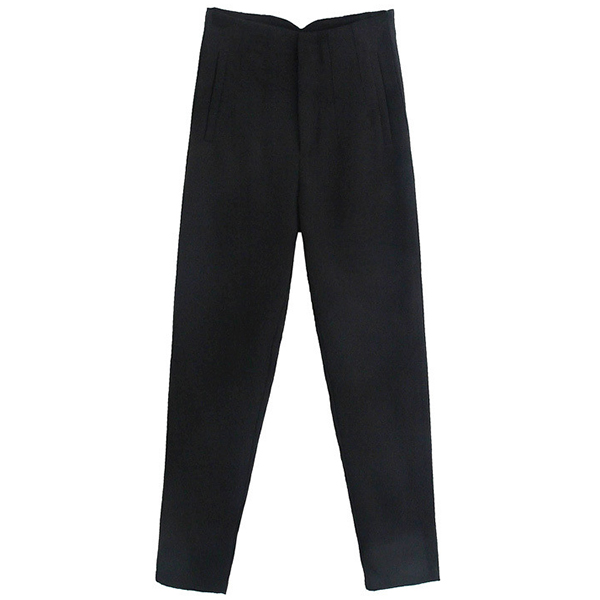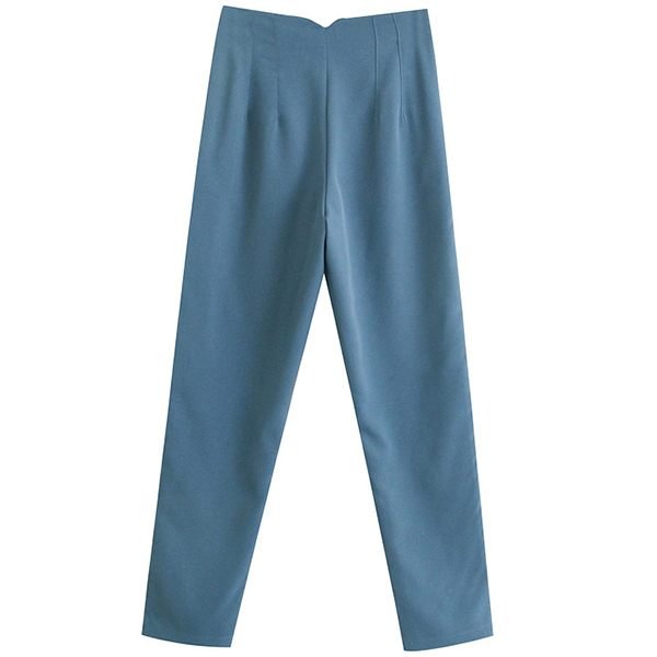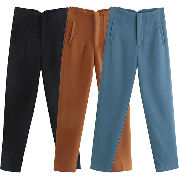 These pants feature a high-rise waist, a solid color design, and pleated details. The solid color design provides a sleek and timeless aesthetic. Hope you like it.