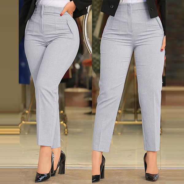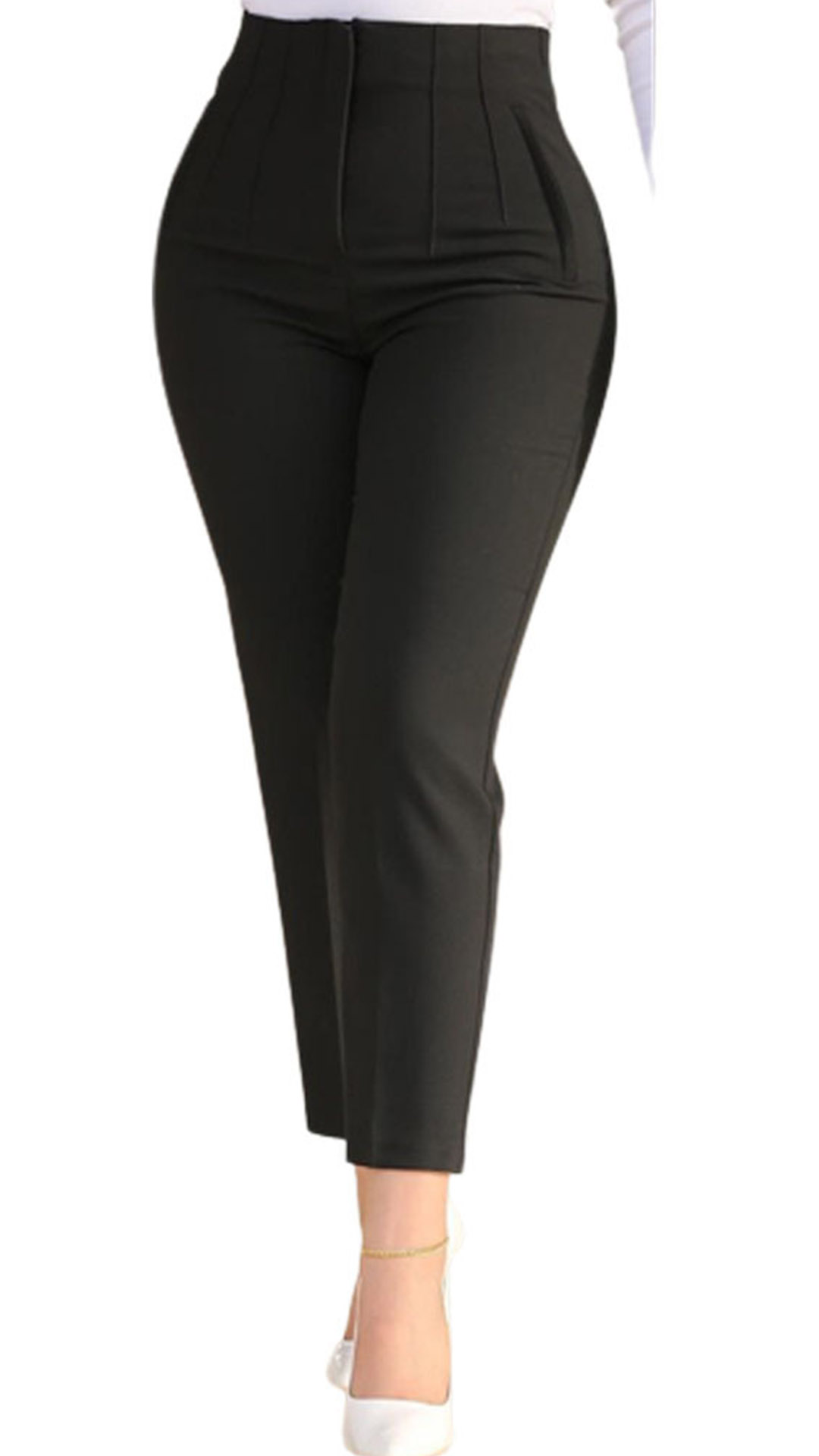 Fashion Solid Color Pleated High-rise Skinny Pants