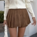 These skorts feature a solid color design, pleated detailing, and a flattering silhouette, creating a chic and trendy look that is perfect for any occasion.The combination of shorts and a skirt in one garment makes these skorts a practical and stylish option for those who want both comfort and style in one piece. Pair it with a tucked-in blouse and over-the-knee boots for a polished and sophisticated look, or style them with a graphic tee and sneakers for a more casual and relaxed ensemble.