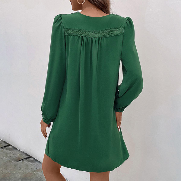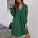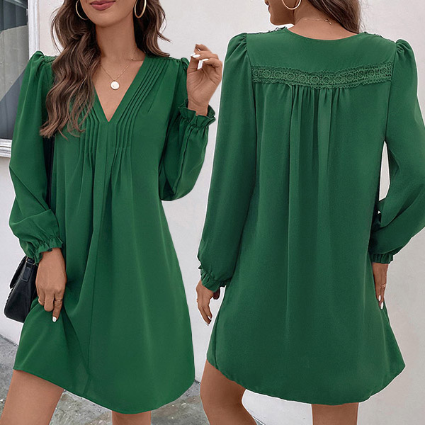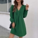 Fashion Solid Color Pleated V-neck Long Sleeve Mini Dress