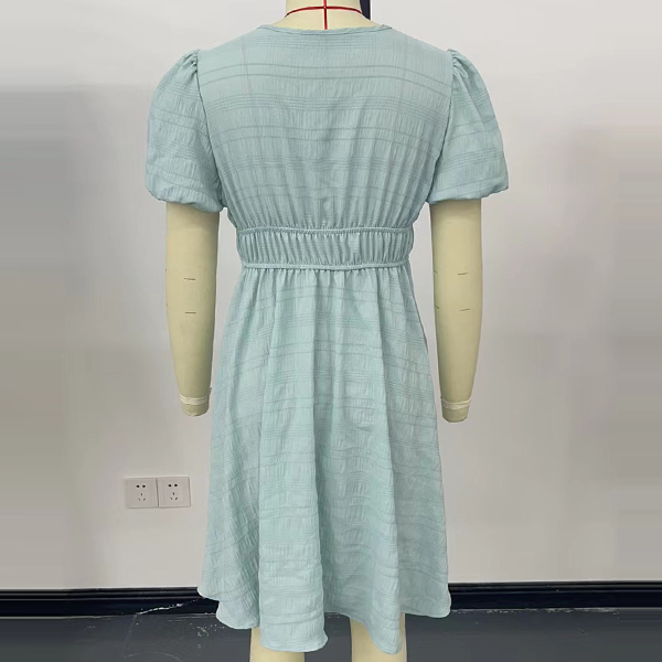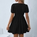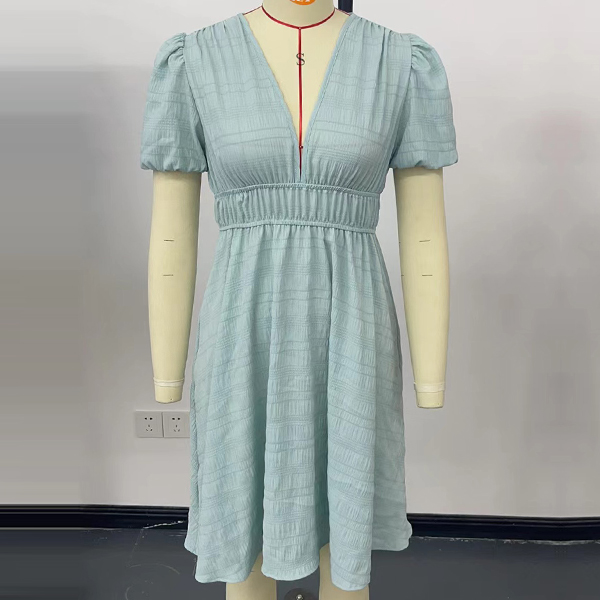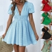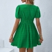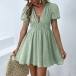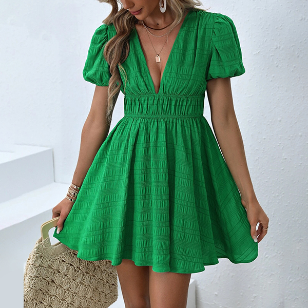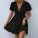 Fashion Solid Color Plunge V-neck Short Sleeve High-rise Mini Dress