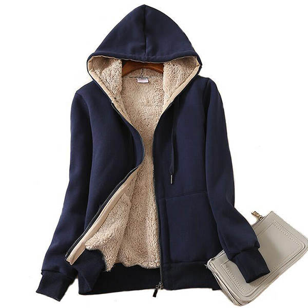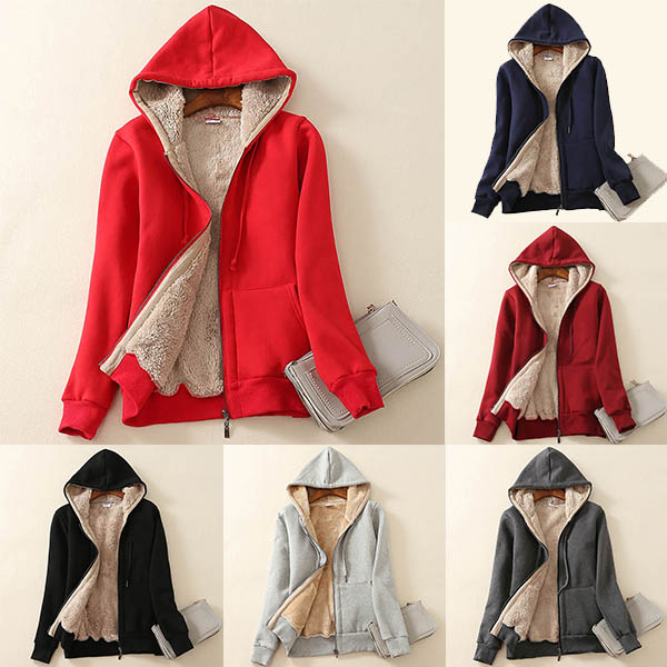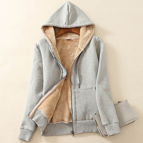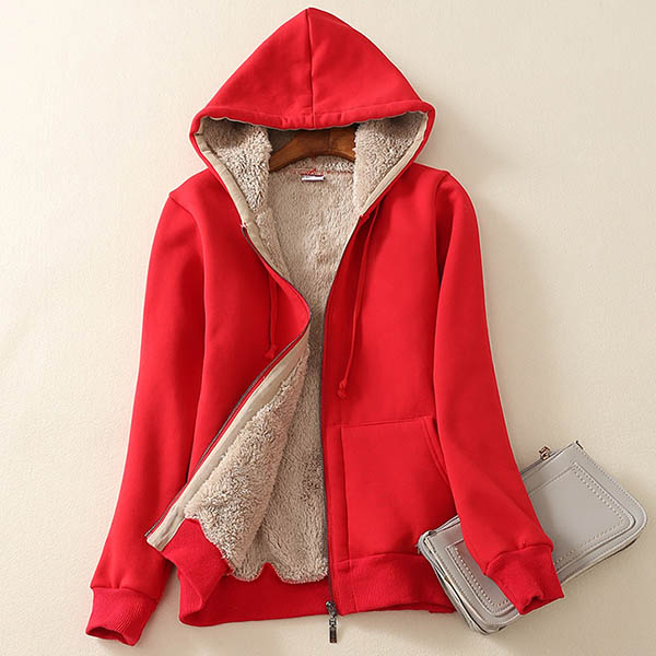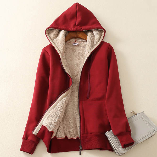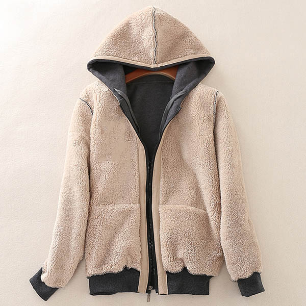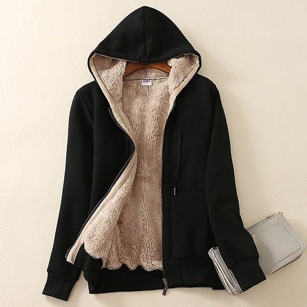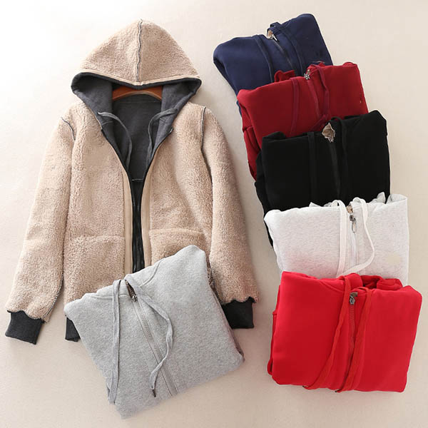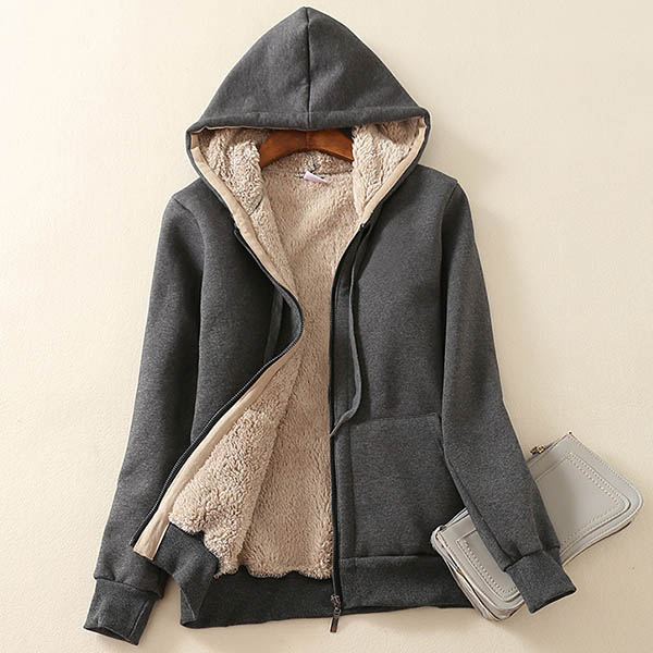 Fashion Solid Color Plush Lining Hooded Sweatshirt Coat