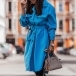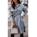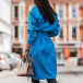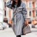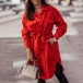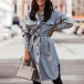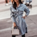 Fashion Solid Color POLO Collar Arc Hem Single-breasted Windbreaker Coat with Waist Strap
