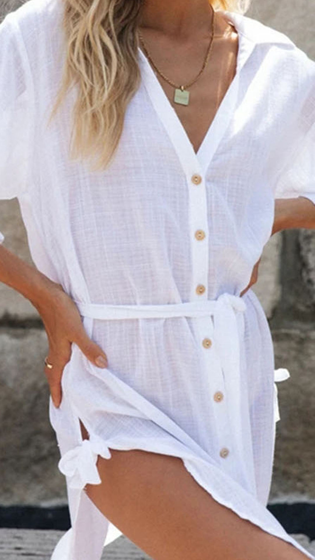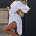 Wanna try a different style dress? Then look no further than this shirt dress! It comes with a solid color,the side slit hem is the highlight,which can lend you a dash of sexy and flirty vibes. Meanwhile,its soft and breathable fabric can ensure you a comfortable day. So you can just slip into this piece to express your style and charm.