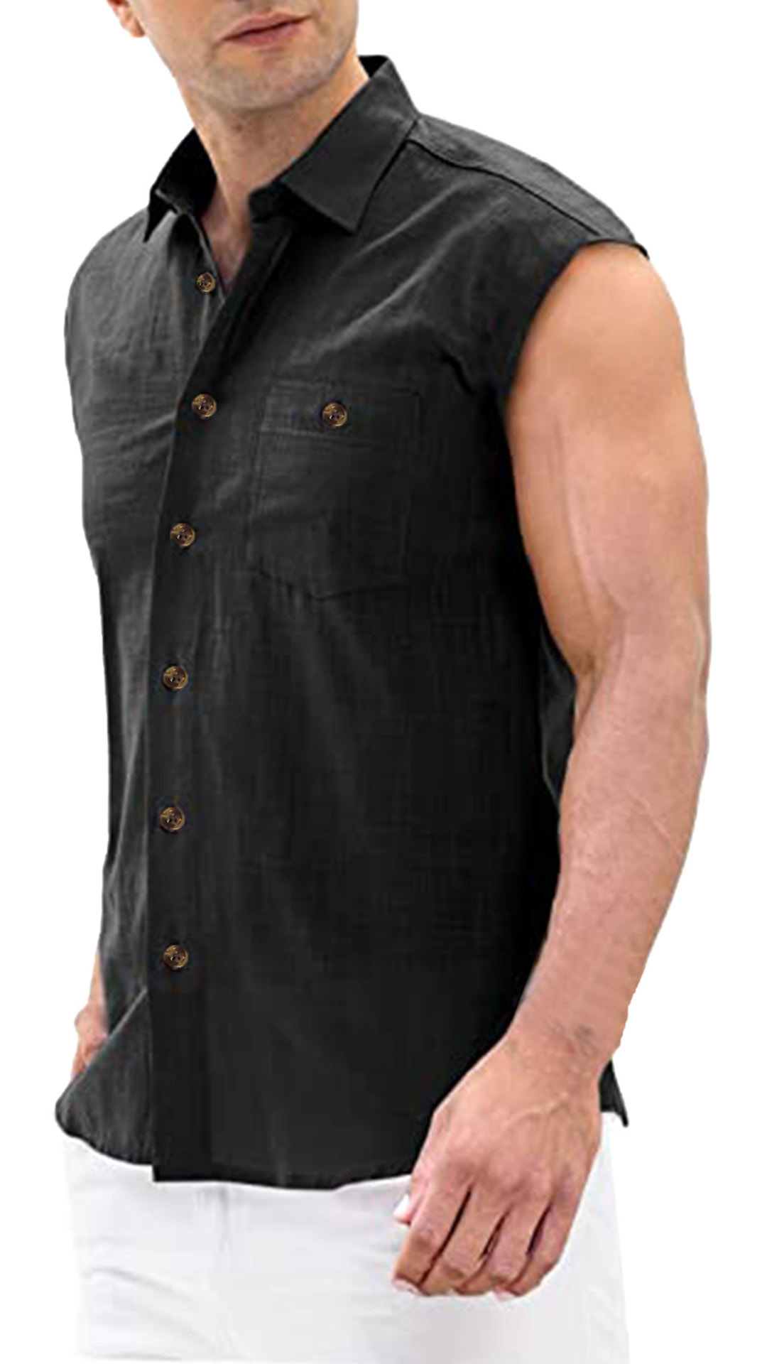 Fashion Solid Color Polo Neck Sleeveless Buttoned Shirt for Men