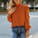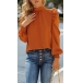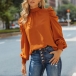 Fashion Solid Color Puff Sleeve Lace-up Mock Neck Loose Top