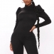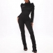 Thanks to the flattering black tone and tight silhouette design,your slender figure can have a full display in this jumpsuit. Finished with mock neck and puff sleeve design,this chic piece also can ensure you a comfortable day with its soft and breathable fabric. Your style can have an instant boost when you wear this piece.