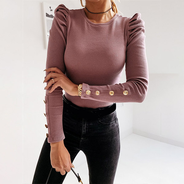 Every girl's wardrobe calls for a simple,stylish and all-match bottoming top. So what are you waiting for if you still not have one? This piece comes with a solid color,with puff sleeve,round neck and a fit silhouette,this piece allows to be matched with different style bottoms.