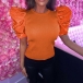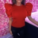 Fashion Solid Color Puff Sleeve Round Neck T-shirt