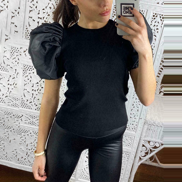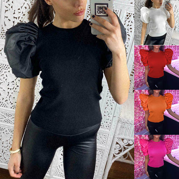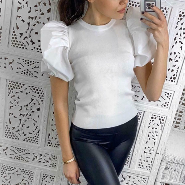 If style and comfort is what you're seeking for,then this t-shirt is sure to strike your fancy. Solid color tone design makes it look simple yet generous,while the puff sleeve design can easily enhance its entire charm. We suggest you matching with a tight pants to achieve for a simple but fashionable daily look.