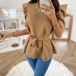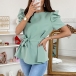 Fashion Solid Color Puff Sleeve Round Neck Top with Waist Strap