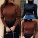 Fashion Solid Color Puff Sleeve Turtleneck Slim Fit Top