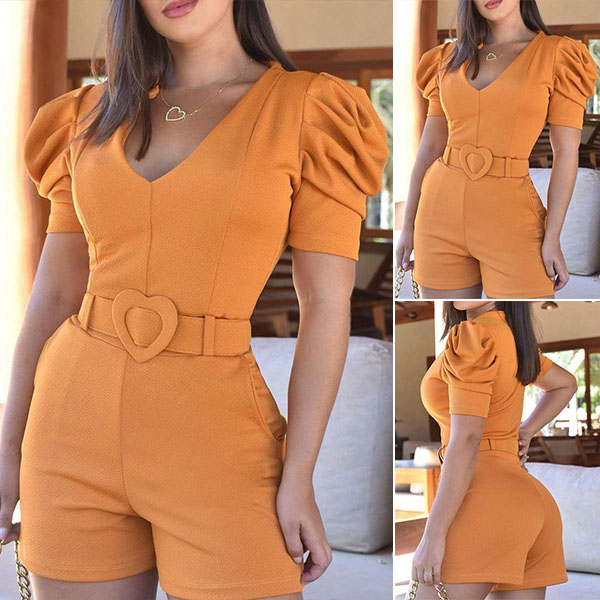 This romper comes with a bring color,which can help you gain more eyes. Meanwhile,the puff sleeve and v-neck design can help enhance your feminine appeal. It is outfitted with high waist and a fit silhouette,this romper also can portray your slender figure. So if you wanna update your daily style,you can just have a try this piece!