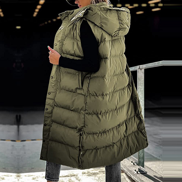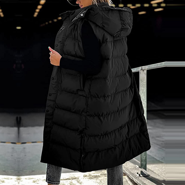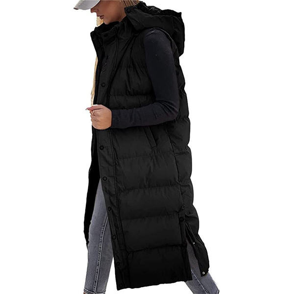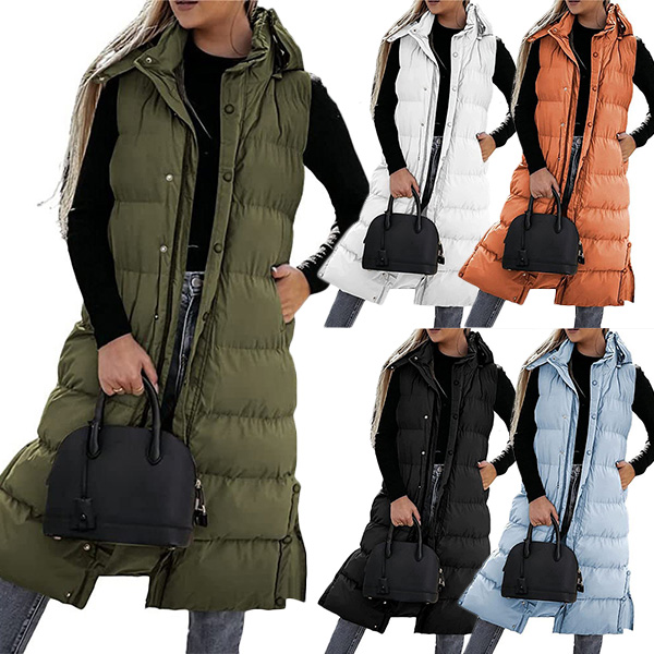 Fashion Solid Color Quilted Stand Collar Hooded Sleeveless Vest