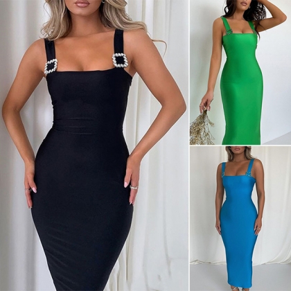 Fashion Solid Color Rhinestone Bodycon Dress