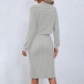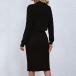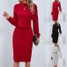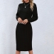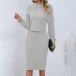 Fashion Solid Color Ribbed Two-piece Set Consist of Mock Neck Shirt and Pencil Skirt