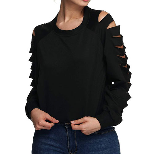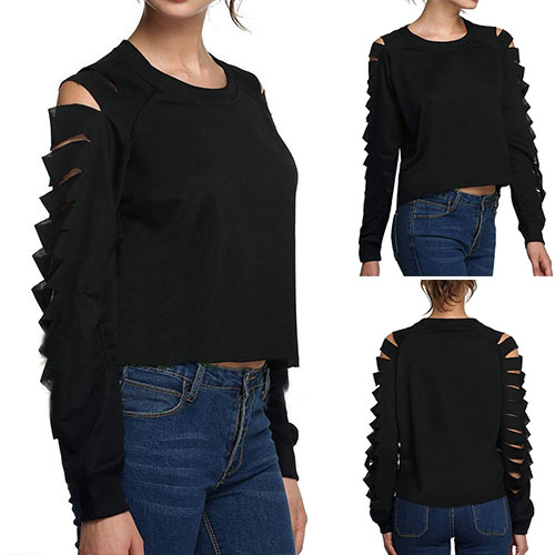and skin-friendly fabric,this t-shirt can keep you comfy all day. And its sleeves with ripped design