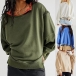 Fashion Solid Color Round Neck Batwing Long Sleeve High-low Hemline Shirt