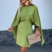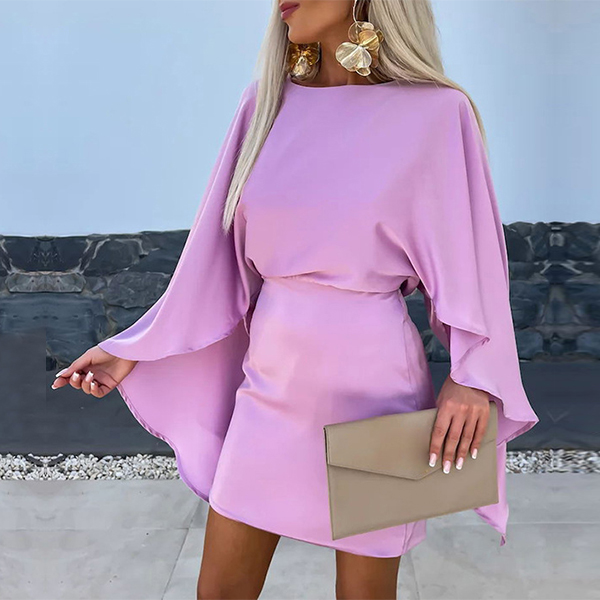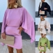 Fashion Solid Color Round Neck Batwing Sleeve Bodycon Dress