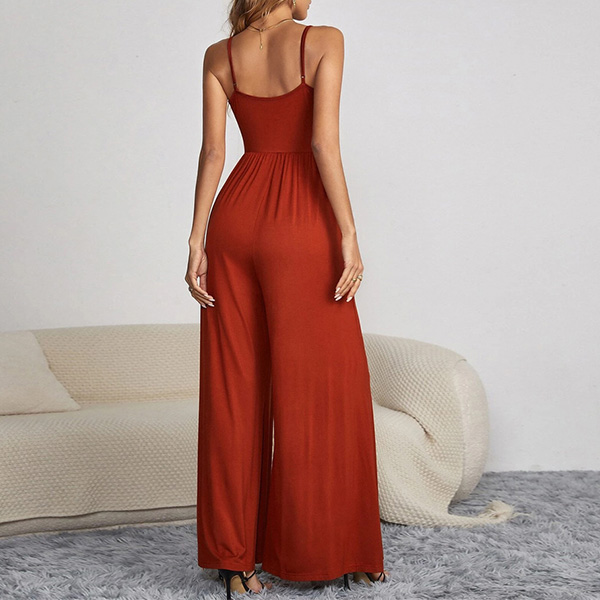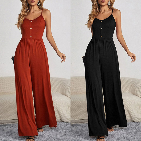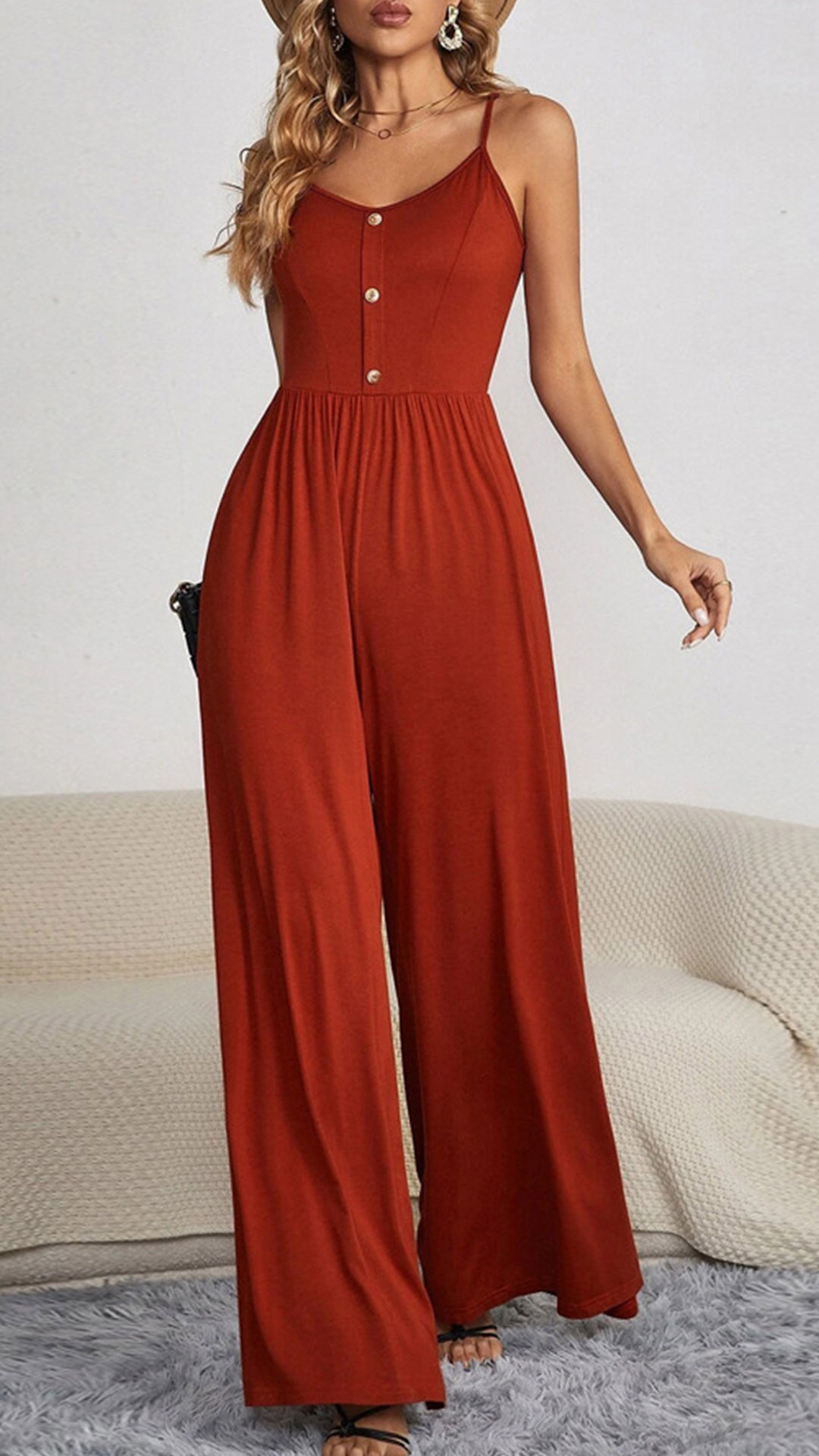 This chic and versatile jumpsuit features a round neckline, front button details, and wide-leg pants, combining comfort and fashion in one effortless ensemble. Crafted with high-quality and breathable fabric, this jumpsuit ensures comfort throughout the day.